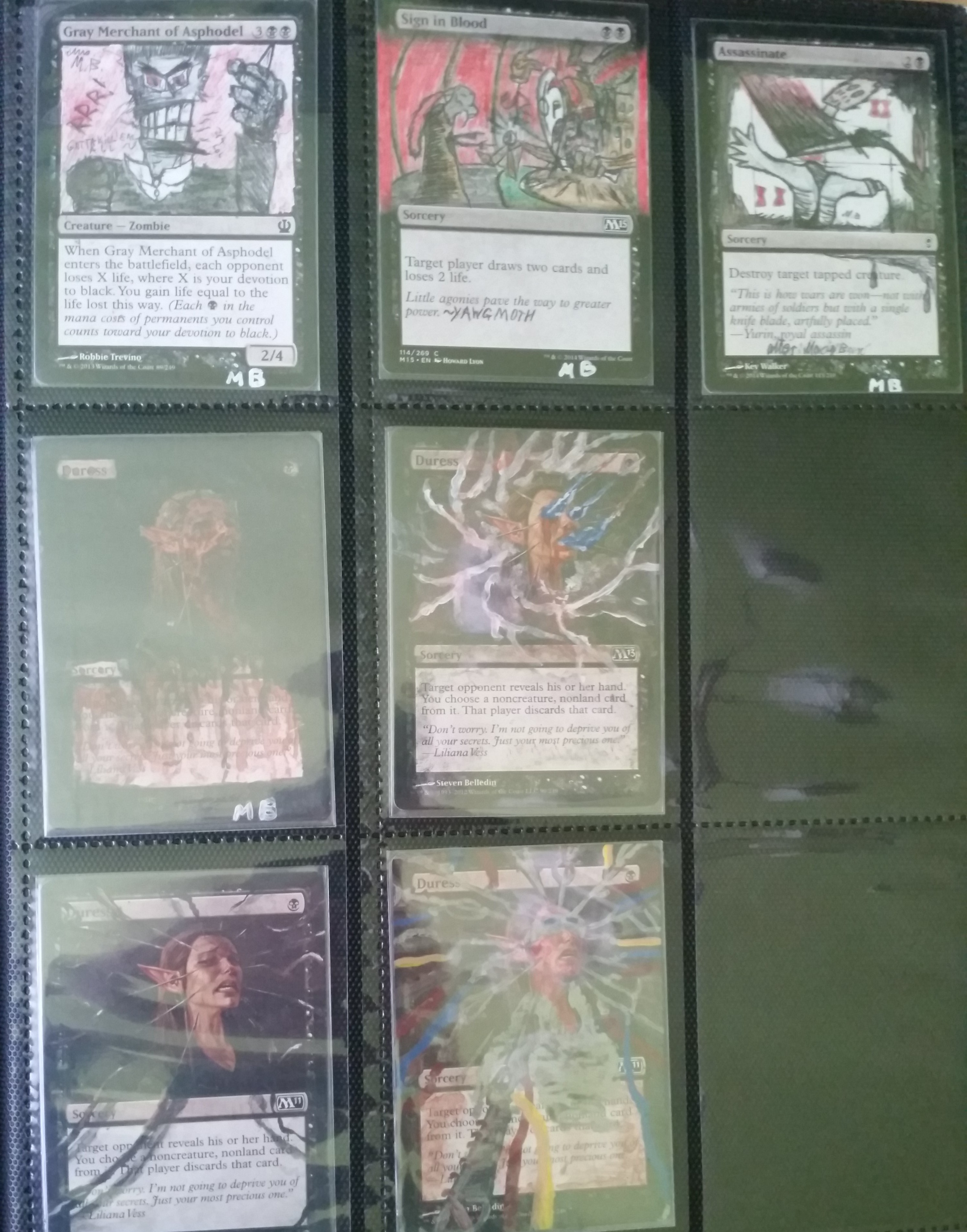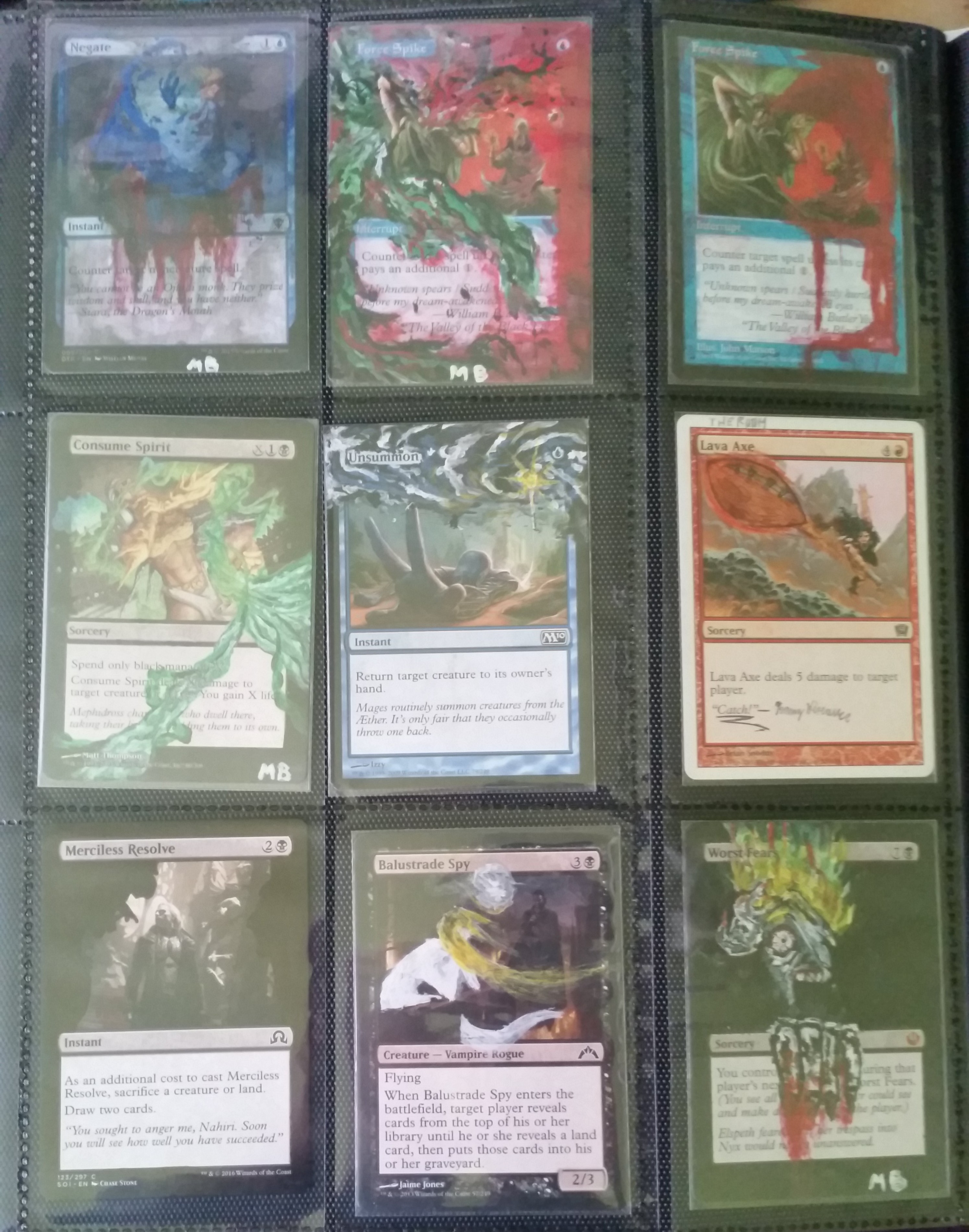In 2013–2017 I was very interested in Trading card game “Magic: the Gathering”. I started playing during the release of Theros and quit somewhere during Shadows over Innistrad. I still keep a small collection of alternative artwork that I have painted on the cards.